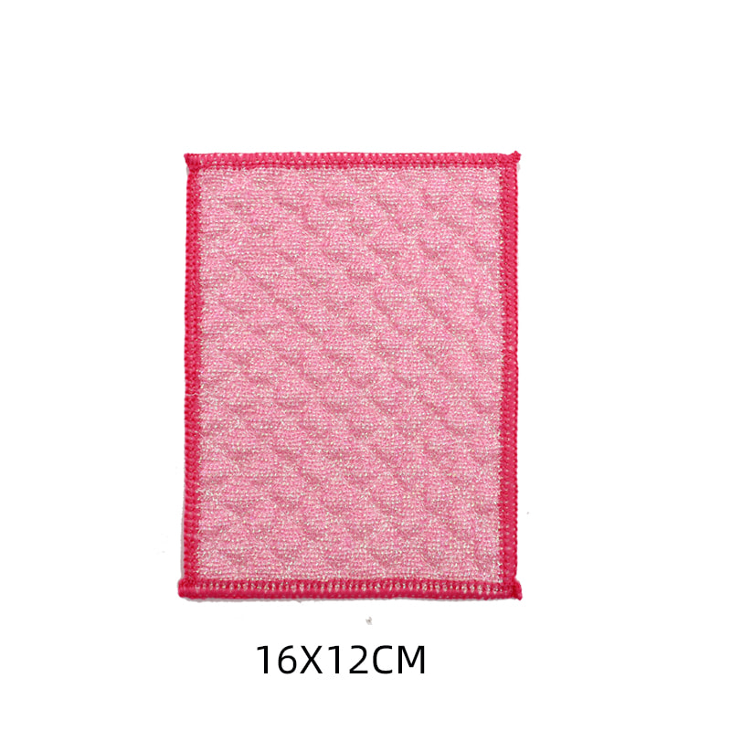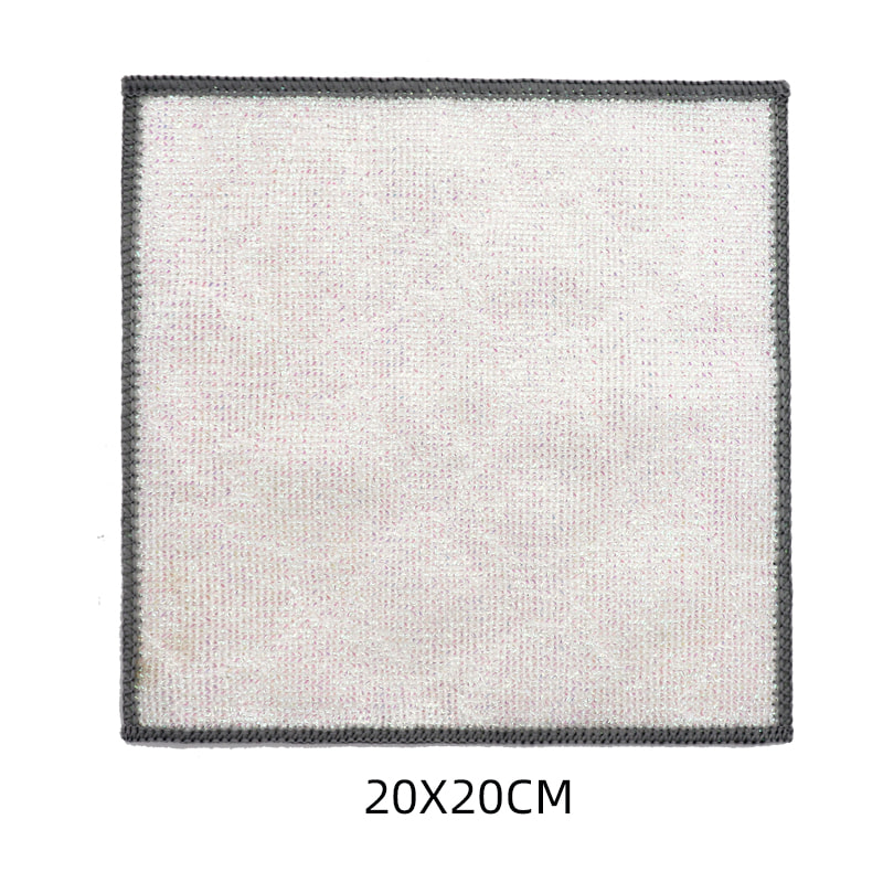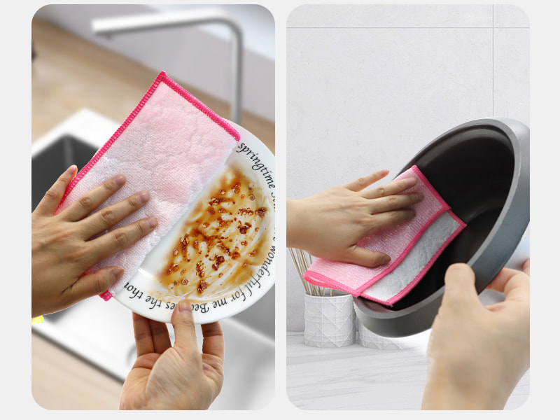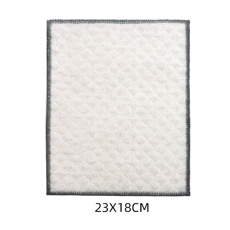 Kain penggosok serat bambu Sutra Berwarna, Satu sisi adalah kain pembersih warna-warni dengan kemampuan menggores yang kuat, dan sisi lainnya adalah Kain serat bambu, yang memenuhi fungsi ganda yaitu mengikis dan menggosok di satu sisi; Bebas minyak dan memiliki daya serap air yang kuat. Terbuat dari sutra warna-warni, dengan penampilan tinggi dan perawatan Zou di permukaan, yang membuat kain pembersih sutra warna dengan daya gesekan yang kuat memiliki gaya gesekan yang lebih kuat, tetapi tidak melukai peralatan masak; Ini memiliki efek pembersihan yang baik tanpa menghilangkan minyak.